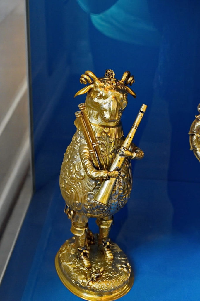 В XVI-XVII веках немецкие мастера из Нюрнберга особенно преуспели в изготовлении питьевых сосудов. Самыми знаменитыми были ложчатые кубки с крышками в форме аквилегии — по-другому этот цветок называется «водосбор». Их также можно увидеть в Александровском зале.